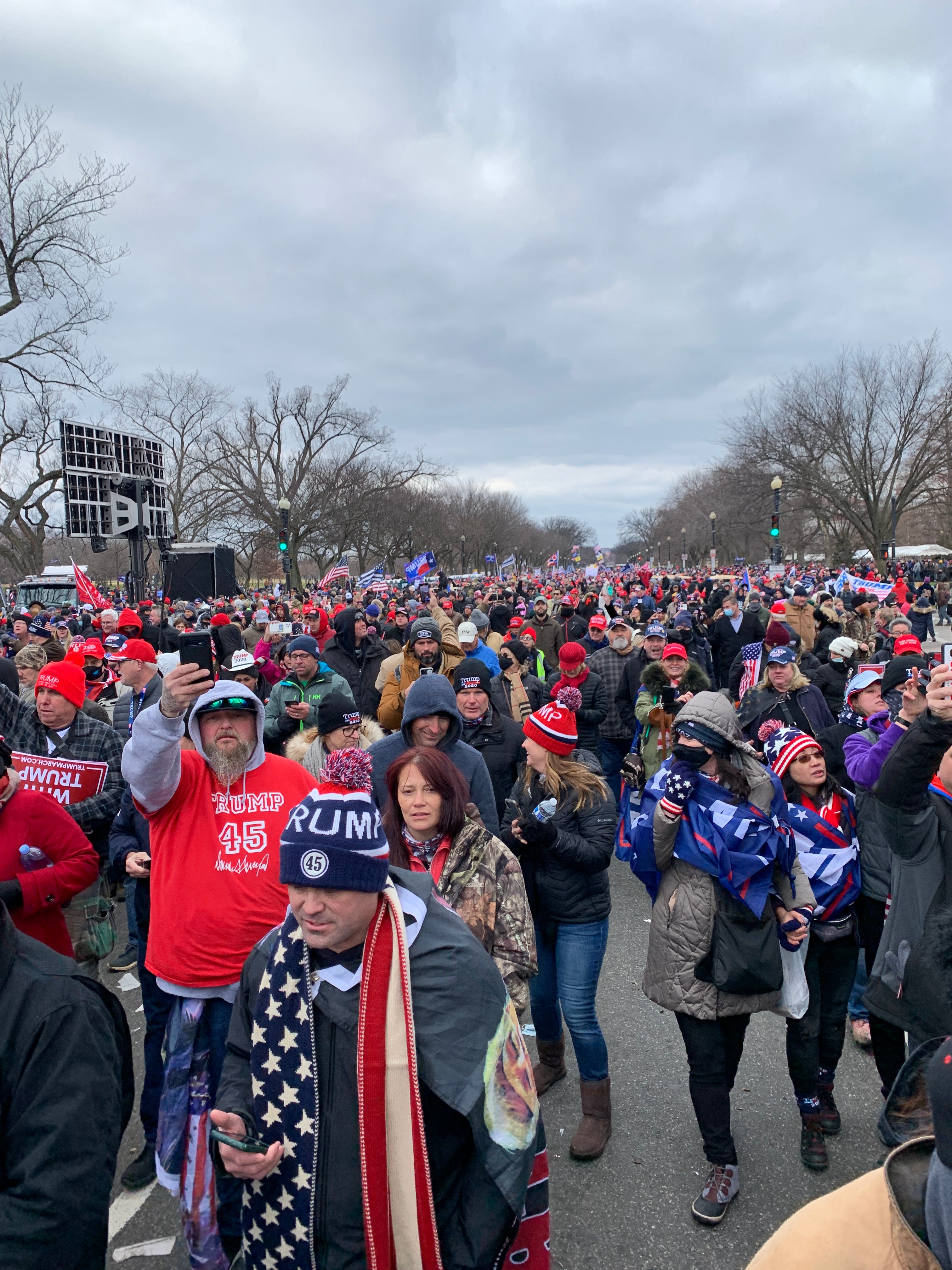 Those attending Trump’s rally convened at the Ellipse which is about 1.4 miles away from the Capitol. On a good day, this is a 30 minute walk – take note of this fact. Our group was separated from the rest of the protestors by security checkpoints and barricades. We were a subset of the larger crowd that was present throughout the National Mall.
