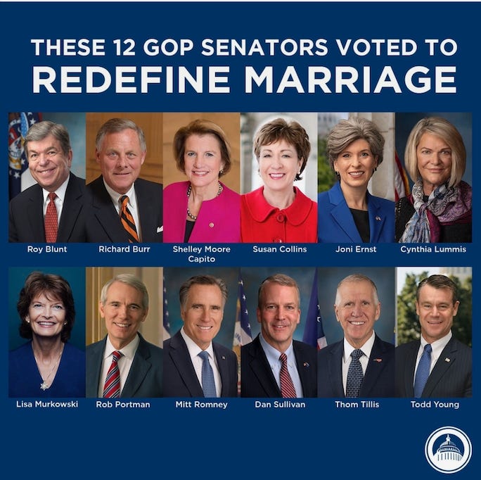 While most of the country is distracted by holiday and end of year festivities, these legislators will seek to pass hard to unravel mischief like the “Respect for Marriage Act” which will subject churches, pastors, and others to lawfare if they do not capitulate to same sex marriage and open the door to polygamy, child brides and a host of other anti-family agendas. Here is a visual of the dirty dozen: