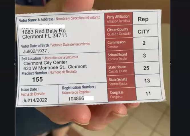 If you were one of the hundreds of thousands migrating to Florida and searched for Red Belly Road in Clermont, you would not find it on Zillow. Better yet, google Red Belly Road and it is nonexistent! How then, can Red Belly Rd. appear on voter ID’s, printed on government paper, using government ink, and thereafter mailed by the government itself?