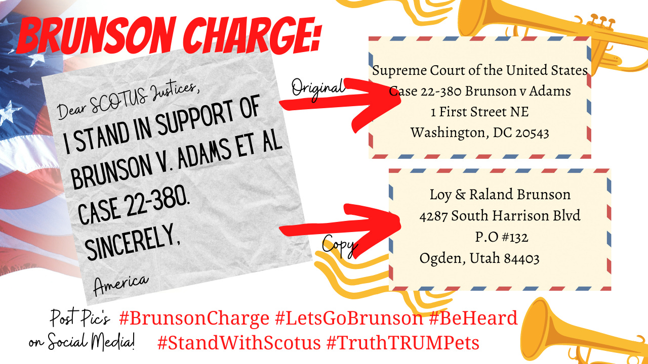 Happily, “Be Heard, Not Herded” on Substack garnered 30K+ reads. While minuscule compared to big influencers, I daresay most who read took an action. So far about 55K handwritten, stamped letters have been sent to SCOTUS. In this digital age where everything is done by clicking on a button, fifty thousand physical letters represent a citizen who took a real stand and in doing so, became part of this case. Beautiful. Please invite others to join the Brunson Charge.
